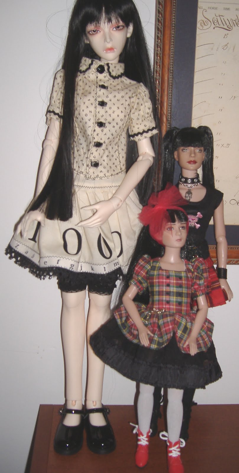 These dolls are great in all sizes! My new outfit on Lamia (yes - that is Dollmore's Dollpire Eve with a blonde wig and girly outfit - a different look for her) was designed by Etsyian Bambola Sugar - who has three amazing/unique shops. One for doll fashions, another for printed matter, and a third for purses and pillows.Check her out -