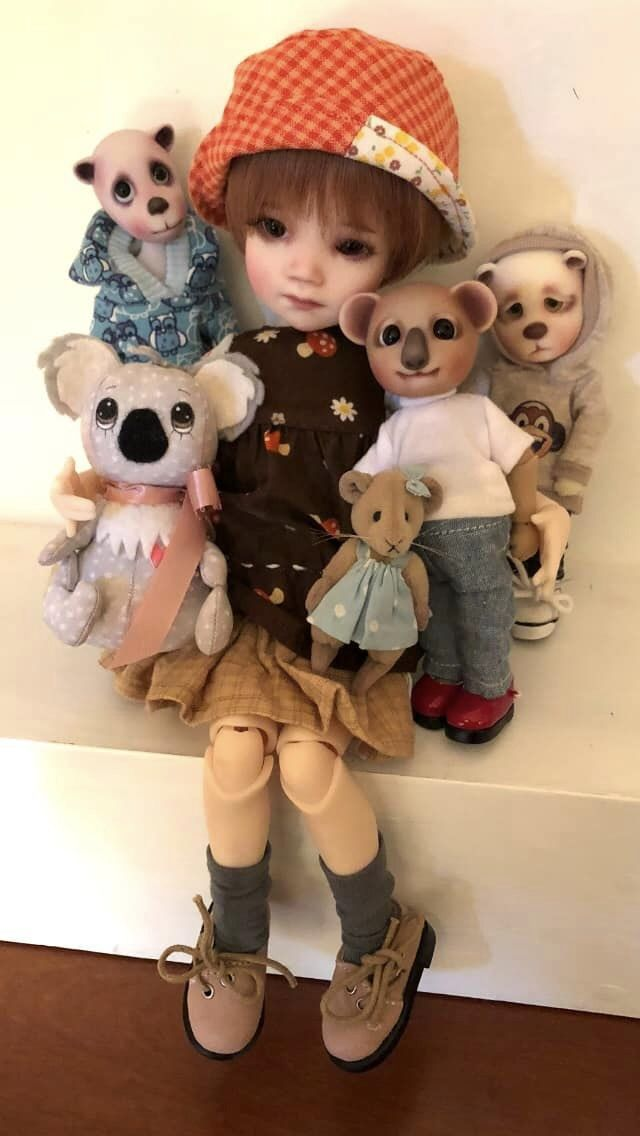 Two additions to this group - little Willow (think her name is Willomena) and the amazing little Dinky Koala.. Of course some of the bears wanted to greet them as well.